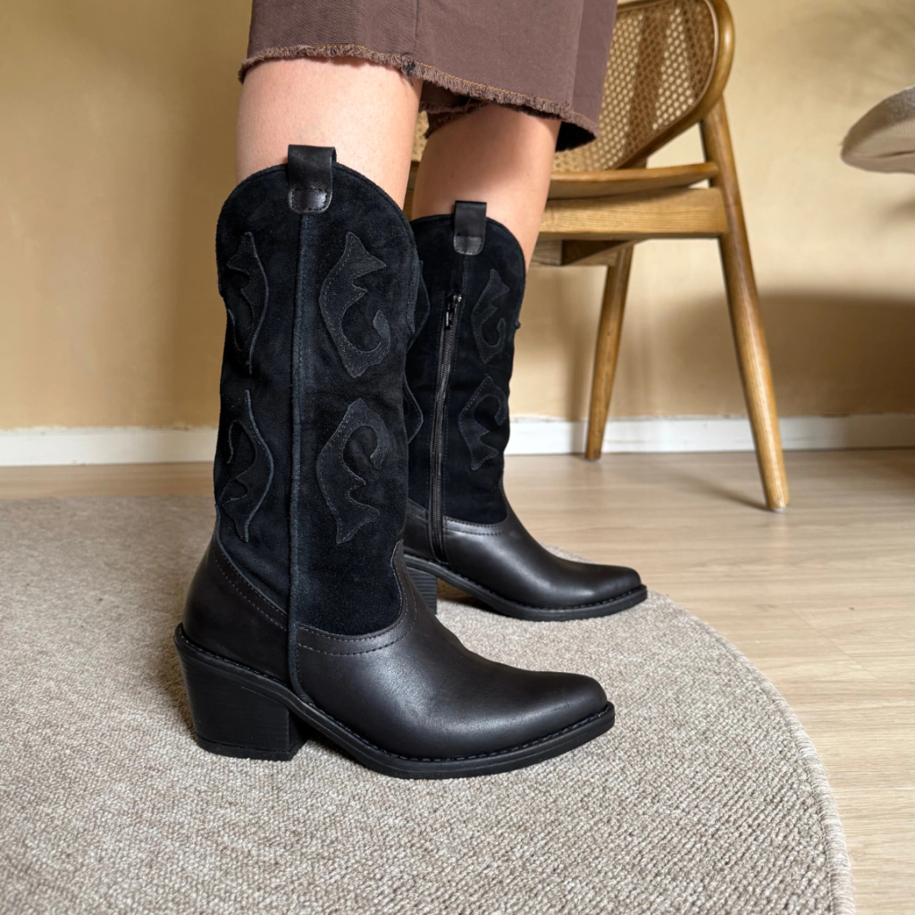 Reversionamos nuestra TEXANA INFALTABLE! Para que este verano las combines con bermudas, shorts, vestidos y faldas! Porque a esta altura ya sabemos que el verano no es solo para sandalias! Esta vez, nuesta texana hit en combinacion de cuero y gamuza que quedo increible! Con recortes a tono y la altura de caña justa. Es hiper blandito el cuero, cuenta con cierre interno y un recorte en V la parte frontal que estiliza muuuuucho!