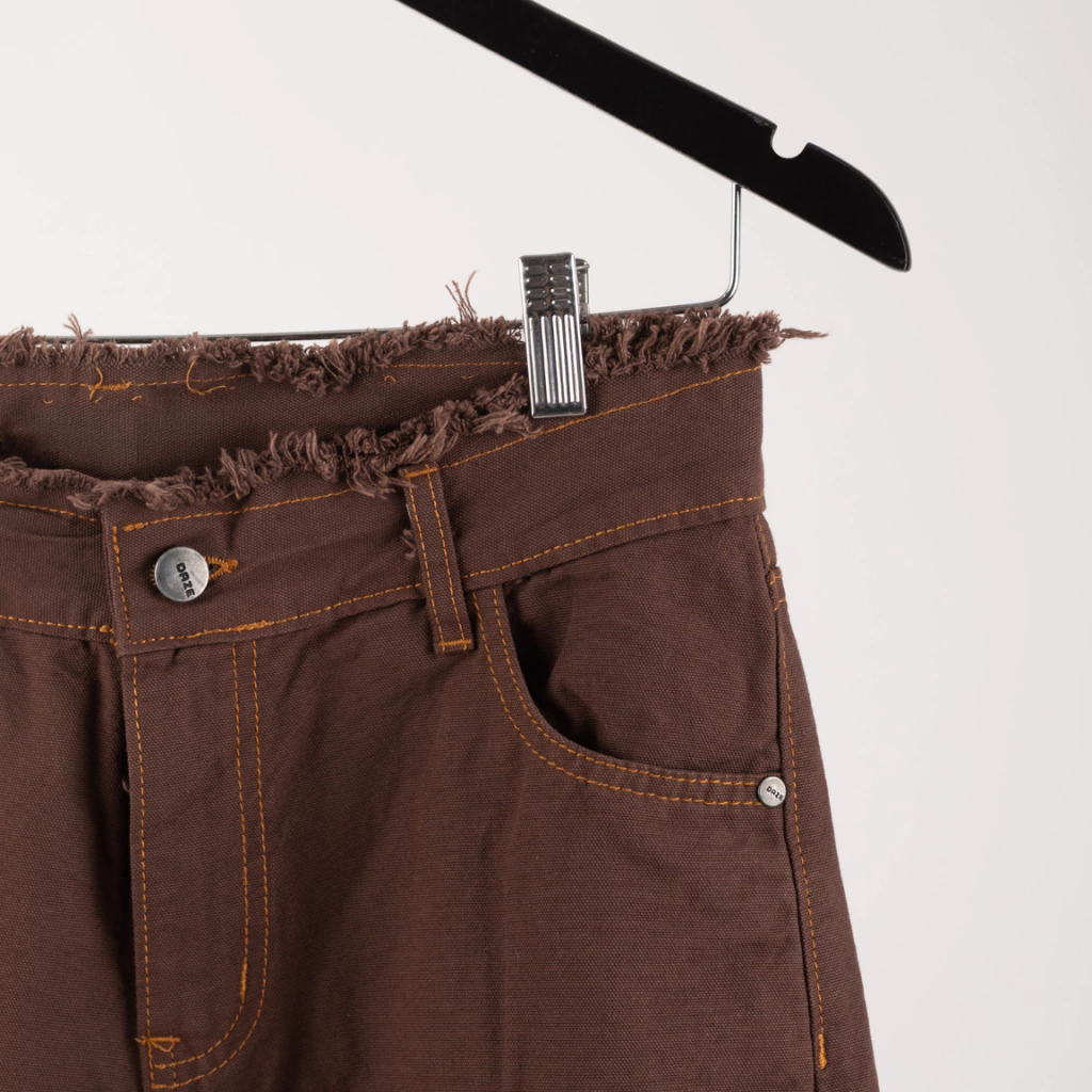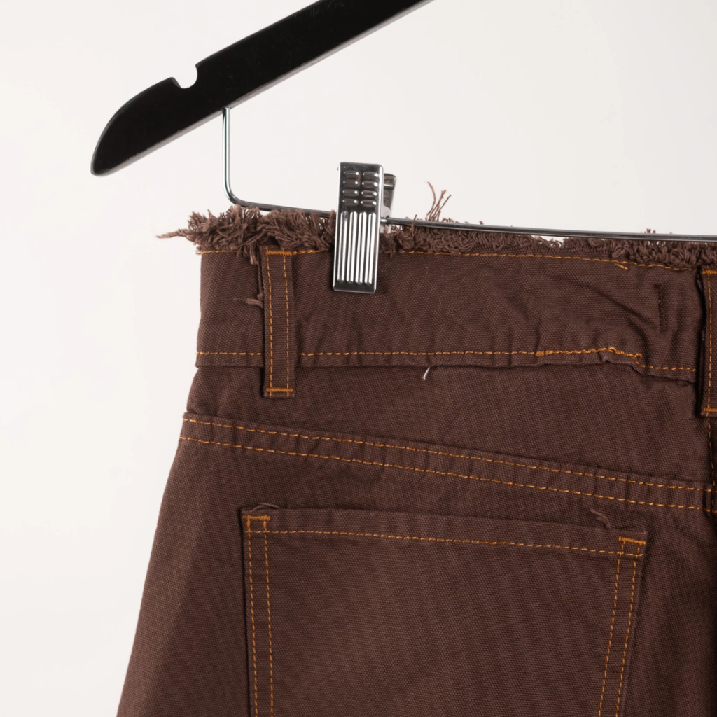 Está pre-lavada. Tiene la costura en un hilo color marrón más claro que le aporta onda y descontractura. El corte es doble bolsillo atrás, deflecada en cintura y en piernas, tiene botón central y cierre. Trae pasacinto de 4cm.